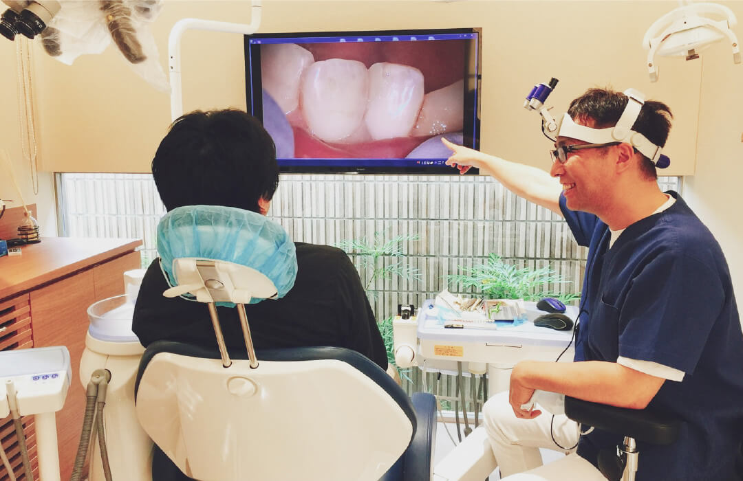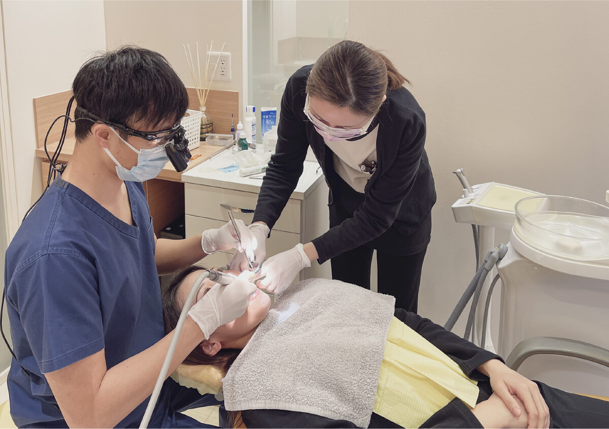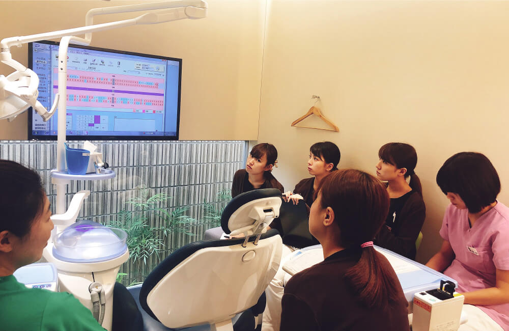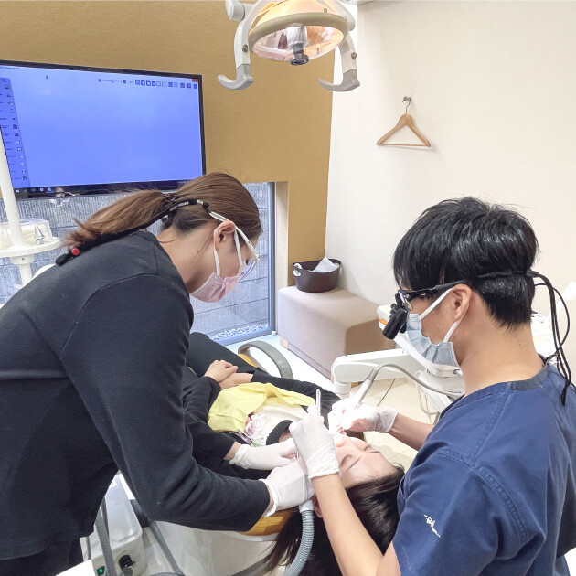 常勤の歯科衛生士が6人いますので、全体の歯周組織の改善をしてから、修復補綴処置を行い、メンテナンスまで行うシステムが出来ておりますので、先生の理想的な治療計画を立案できることが可能です。